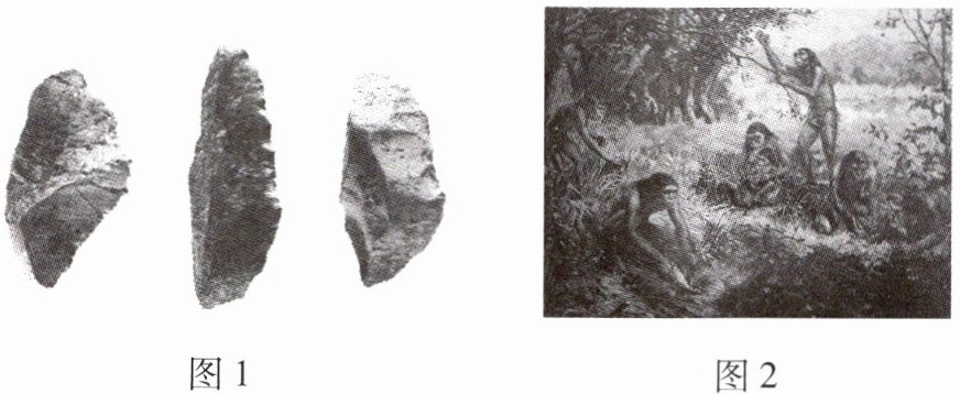 (1) 根据材料一,结合所学知识,请你想象一下北京人是如何制作图1中的工具的,简要讲述图2中的北京人的活动。
