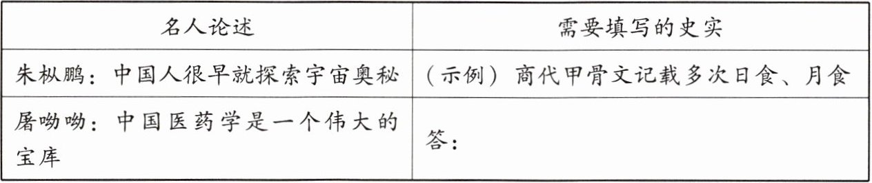 (1) 仿照示例,为科学家论述的历史结论提供一例相应史实。