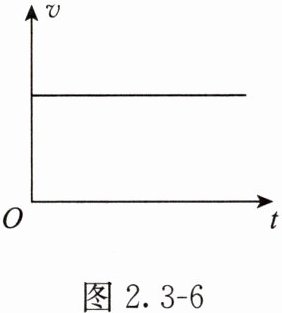 匀速直线运动的速度 $ v $ 不随时间变化,其 $ v - t $ 图像中的图线为一条平行于 $ t $ 轴的直线,如图 2.3 - 6 所示。$ v - t $ 图线的斜率表示加速度 $ a $,在匀速直线运动中,$ a = \frac{\Delta v}{\Delta t} = 0 $。