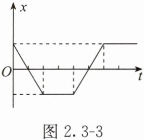 例题 2 一质点的 $ x - t $ 图像如图 2.3 - 3 所示。能正确表示该质点速度 $ v $ 和时间 $ t $ 关系的是(