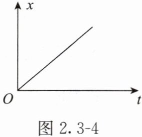 匀速直线运动 $ x - t $ 图像中的图线为过原点的一条倾斜的直线,如图 2.3 - 4 所示。