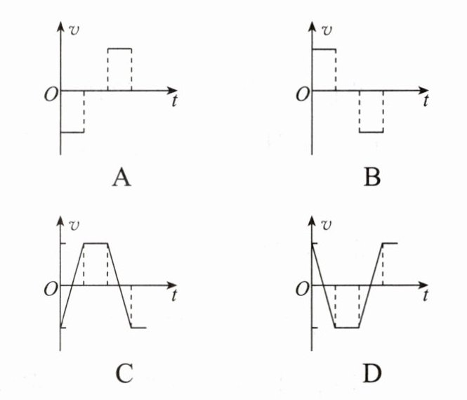 )。.分析 由 $ x - t $ 图像可知,质点在第一个和第二个单位时间内,斜率为负值,表明质点沿 $ x $ 轴的负方向做匀速直线运动;在第三个和第四个单位时间内,斜率为 0,表明质点速度为 0;在第五个和第六个单位时间内,斜率为正值,表明质点沿 $ x $ 轴正方向做匀速直线运动;接着斜率为 0,质点静止。故 $ v - t $ 图像应为 A 选项所示。