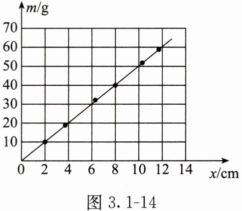 (3)该同学根据表中数据作出$m - x$图像(图 3.1 - 14),纵轴是砝码的质量,横轴是弹簧长度与