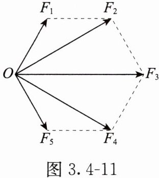 2. 作用于 $ O $ 点的五个恒力的矢量图的末端跟 $ O $ 点恰好构成一个正六边形,如图 3.4 - 11 所示。这五个恒力的合力是最大恒力的()。