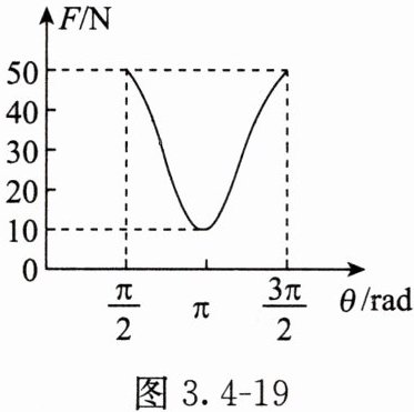 1. 作用在同一质点上两个力的合力 $ F $ 的大小随两个分力夹角 $ \theta $ 变化的情况如图 3.4 - 19 所示,则两个力的大小分别是 $ N $ 和 $ N $。