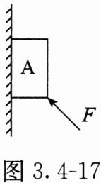 6. 如图 3.4 - 17 所示,为了能使一块重 $ 100 \, N $ 的物体贴着光滑的竖直墙面匀速上行,用一个与竖直方向夹角为 $ 30^{\circ} $ 的斜向上推力 $ F $ 作用在它上面,求推力 $ F $ 和墙面受到的压力 $ F_{N} $ 的大小。