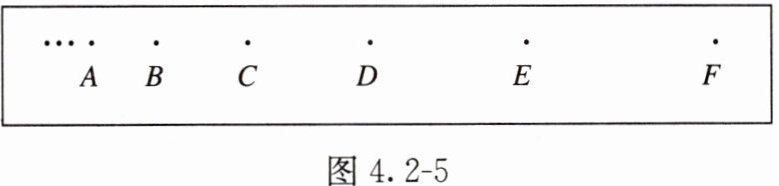 (1)该同学得到一条纸带,在纸带上取连续的六个点,如图 4.2 - 5 所示,相邻两点间的距离分别为 10.0 mm、12.0 mm、14.0 mm、16.0 mm、18.0 mm,则打 $ E $ 点时小车的速度为______ $ m/s $,打 $ B $ 点时小车的速度为______ $ m/s $,小车的加速度为______ $ m/s^2 $。
