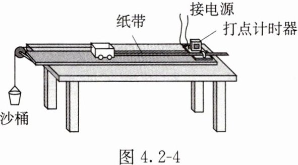 例题 在探究加速度与力、质量的关系实验中,某同学使用了如图 4.2 - 4 所示的装置,打点计时器的打点频率为 50 Hz。