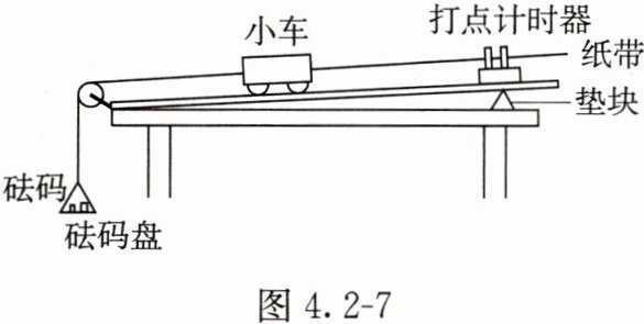 3. (多选)如图 4.2 - 7 所示,研究小车质量 $ m $ 不变的情况下,小车的加速度与小车所受力的关系。下列措施不需要或不正确的是(