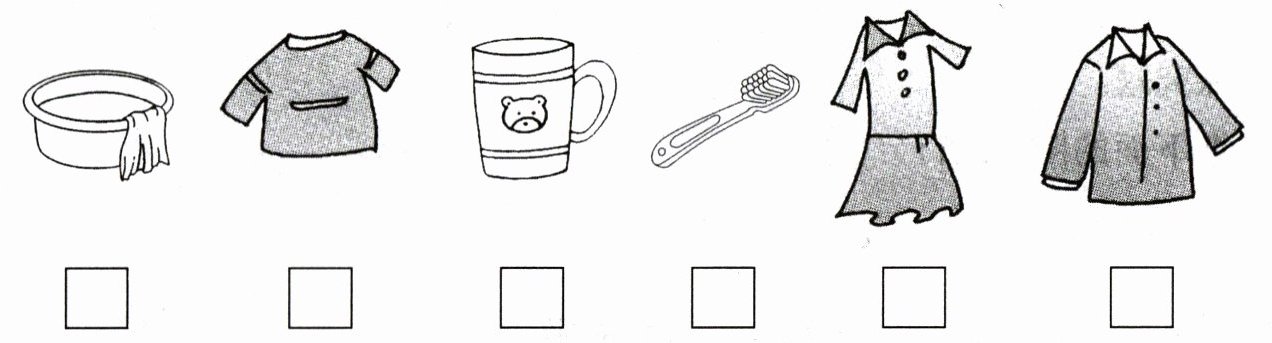 二、在衣服下面画“△”,洗漱用品下面画“○”。(6分)