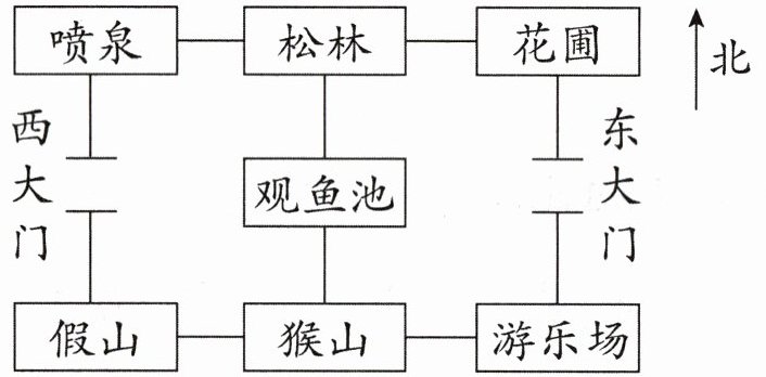 )走到假山,最后向(北