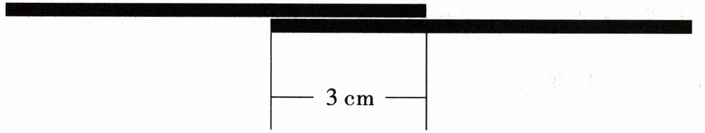把两根长都是$9$厘米的铁条焊接为一根长的铁条,焊接头(如图)长$3$厘米,焊接后的铁条长多少厘米?