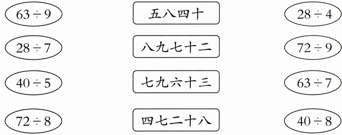 1. $28 ÷ 7 = 4$,读作28除7,商得4。 ( \qquad )
