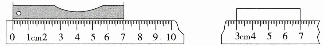 小刀长( \ \ \ \ \ \ )厘米。 纸条长( \ \ \ \ \ \ )厘米。