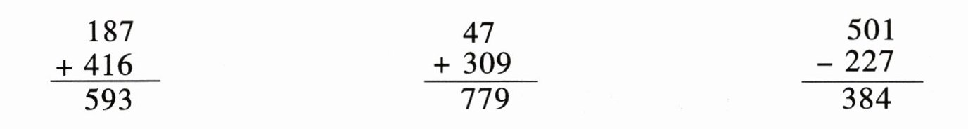 $200 - 56 ÷ 7$ $785 + 165 × 4$ $952 - 287 × 3$