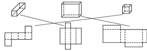 3. 把下面的长方体、正方体与对应的展开图连起来。