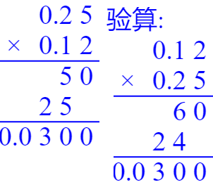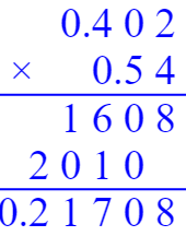 $0.3×5 =$ $0.25×4 =$ $0.7×0.8 =$ $0.1×0.9 =$