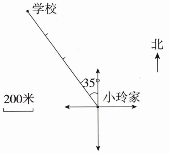 )米。2. 小兰在小玲家东偏北$45^{\circ}$的方向上,距离是400米,请标出小兰家的位置。