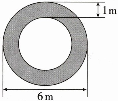 5. 去年一场大雪过后,地上白茫茫一片,但学校花坛周围小路上的雪被同学们打扫得干干净净(如下图)。小路的面积是多少?