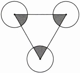 2. 如下图,三角形为等边三角形,3个圆的半径都是4厘米。求阴影部分的面积。