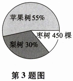 3. 下面是一个果园种植苹果树、梨树、枣树的统计图。这个果园共种植 3 种果树(