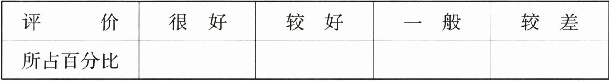 (2)计算每种评价所占的百分比,并填入下表。为了表示下表中的数据,选用哪种统计图最合适?