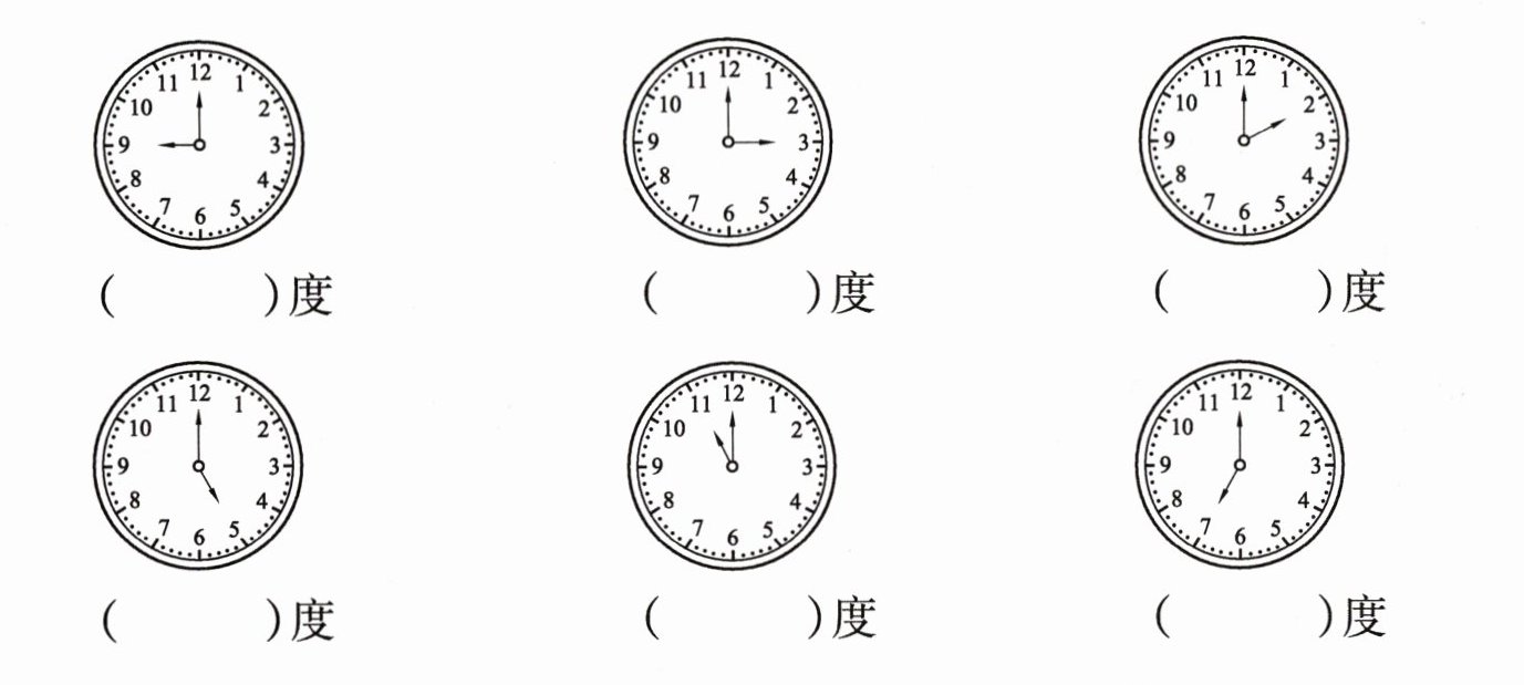 八、写出下面每个钟面上时针和分针组成的较小角的度数。(12分)