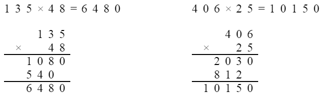 $ 135 × 48 = $ $ 406 × 25 = $ $ 630 × 90 = $