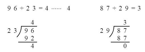 $96÷23=$ $87÷29=$ $\triangle366÷70=$