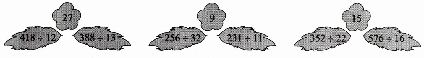 3. 估一估哪片叶子上的商最接近花蕊上的数,请把它圈出来。(6分)