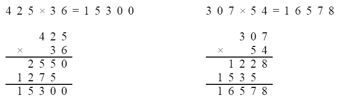 $425×36 =$ $307×54 =$ $753÷25 =$