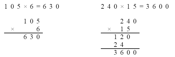 $105×6 =$ $240×15 =$ $483÷69 =$