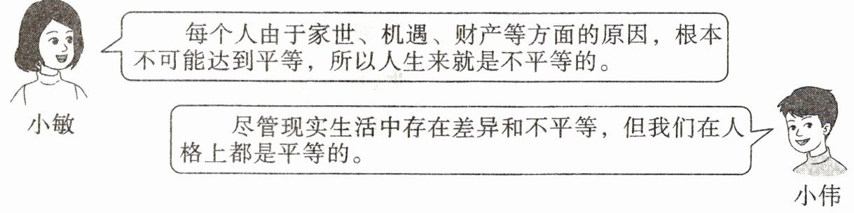 小敏:每个人由于家世、机遇、财产等方面的原因,根本不可能达到平等,所以人生来就是不平等的。