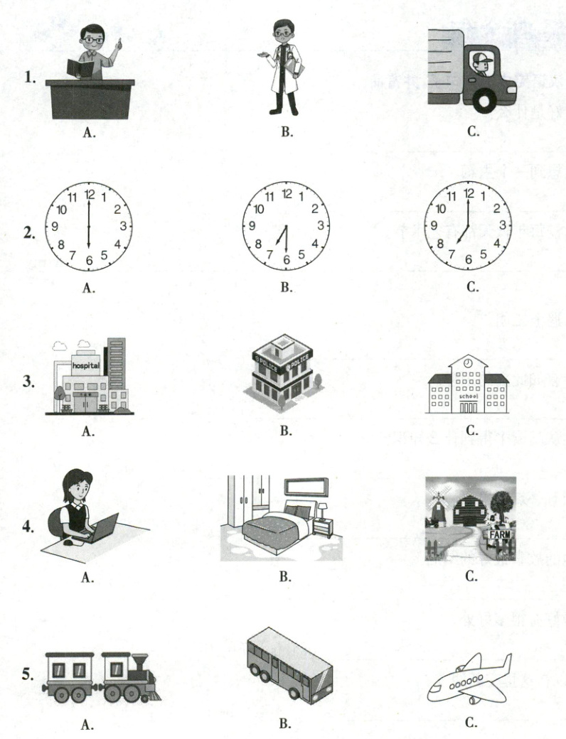 Ⅰ. 听句子,选择与句子内容相符的图片。每个句子读一遍。