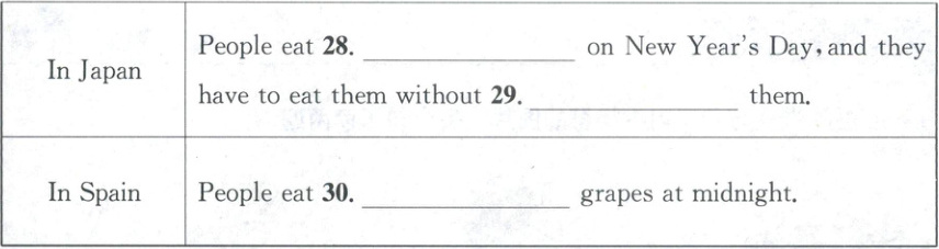 26. same 27. have fun 28. long noodles 29. cutting 30. 12/twelve