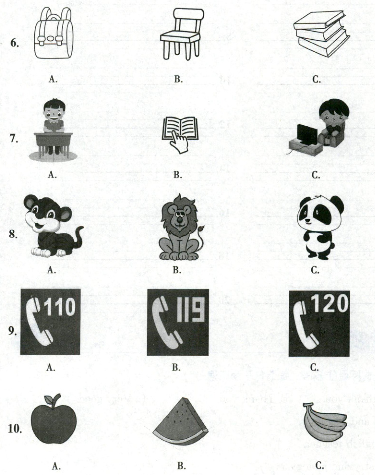 Ⅱ. 听句子,选择与句子内容相符的图片。每个句子读两遍。