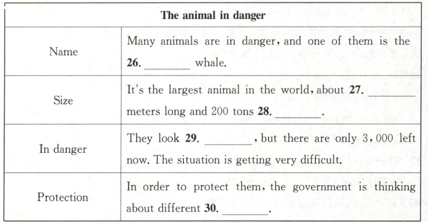 Ⅵ. 听短文,完成表格中所缺的单词。每空一词。短文读两遍。