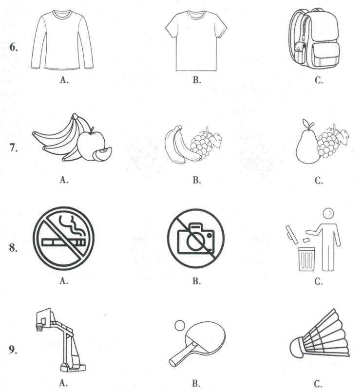 Ⅱ. 听句子,选择与所听句子内容相符的图片。每个句子读一遍。