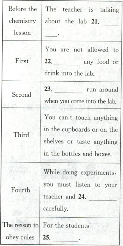21.rules 22.bring 23.Never 24.watch 25.safety