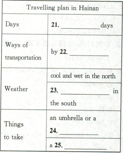 (注:因无法直接查看图片表格结构,根据常规表格题格式,假设答题空对应序号21-25,答案填入如下)