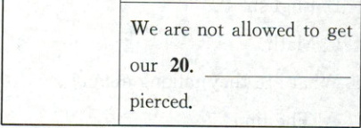 16. kind 17. forty/40 18. late 19. wear 20. ears