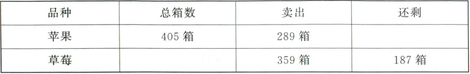 1. 王爷爷家的水果大丰收,请根据已知条件把表格补充完整。(4 分)