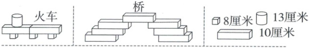 5. 下面用积木搭成的火车能从桥下通过吗?(