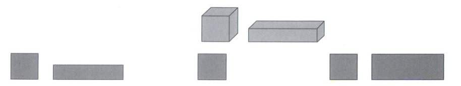 5. 下面三幅图分别是从哪一面看到的?请填写在下面的括号内。