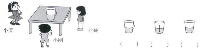 3. 下面右边三幅图分别是谁看到的?在括号里写上对应的名字。