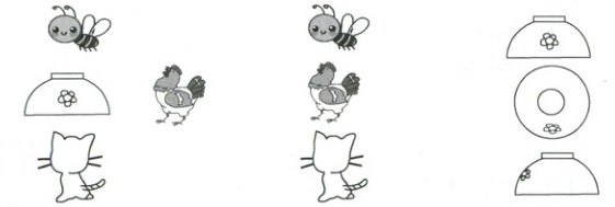 小鸡看到碗的正面(有花朵图案那面),连第三幅图;