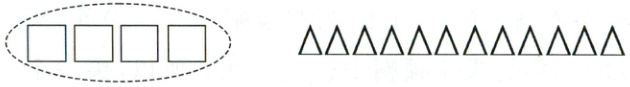 求三角形个数是正方形个数的几倍,用除法计算,算式为$12÷4 = 3$。