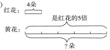 解:已知菊花有$9$盆,兰花是菊花的$5$倍,则兰花有$9×5 = 45$盆。