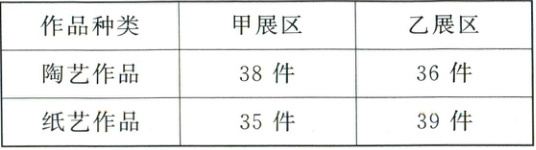 4. 学校手工社团在两个展区展示手工作品数量如下表。(4分)