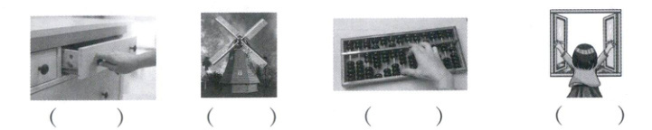 2. 如图,下面物体的运动是平移的在括号里画“△”,是旋转的在括号里画“○”。